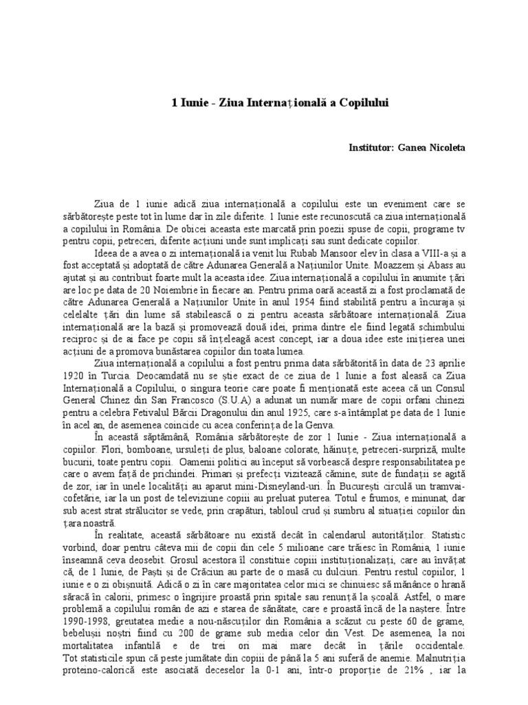 Din Pasiunile Bibliografului 1 Iunie Semnificaţia Zilei