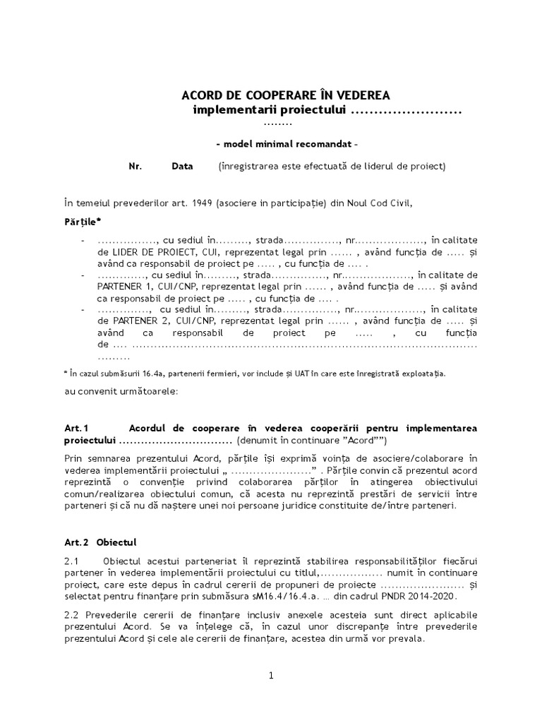 Acord De Parteneriat Model Recomandat