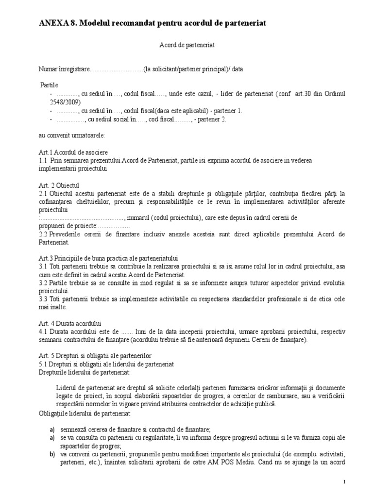 Anexa 8 Model Recomandat Acordul De Parteneriat Final 01 11 2010