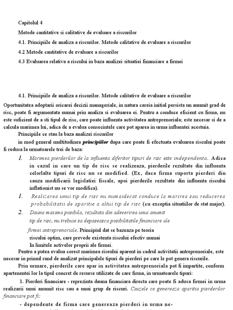Metode Cantitative Si Calitative De Evaluare A Riscurilor