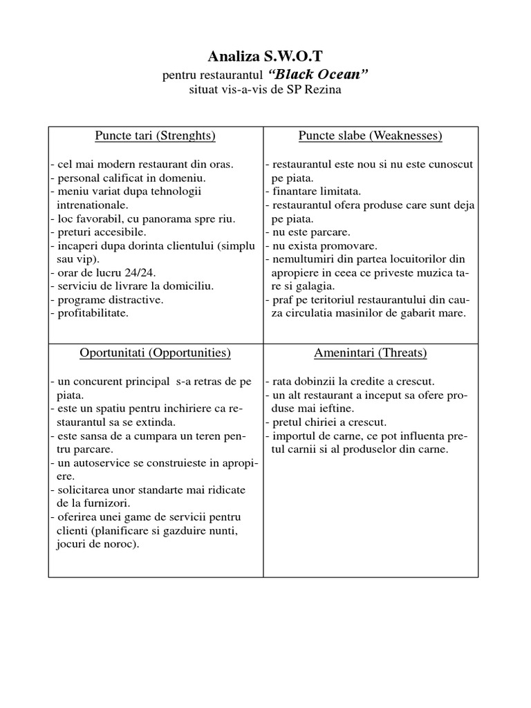 Exemplu De Analiza Swot Pentru Un Restaurant