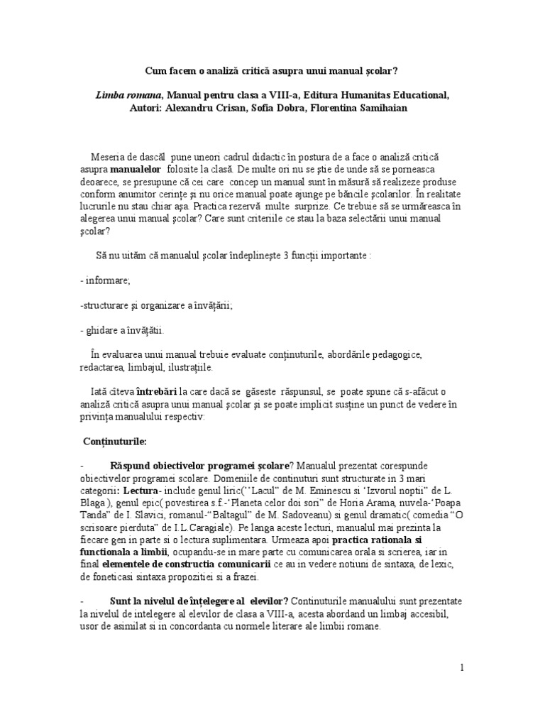 Analiza Unui Manual Scolar Exemplu