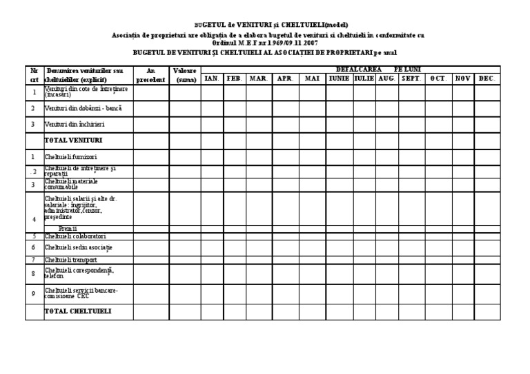 Buget Venituri Si Cheltuieli Model Excel 2018