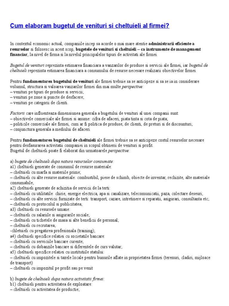 Cum Elaboram Bugetul De Venituri Si Cheltuieli Al Firmei