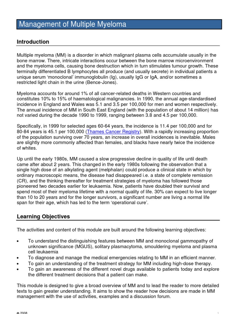 Management Of Multiple Myeloma Multiple Myeloma C Reactive Protein