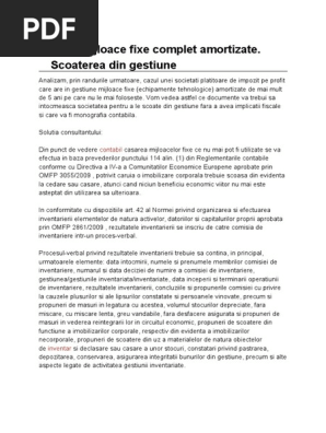 Casare Mijloace Fixe Complet Amortizate Scoaterea Din Gestiune