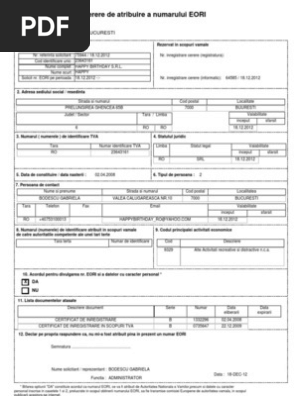Cerere De Atribuire A Numărului Eori Normă Tehnică Lege5 Ro
