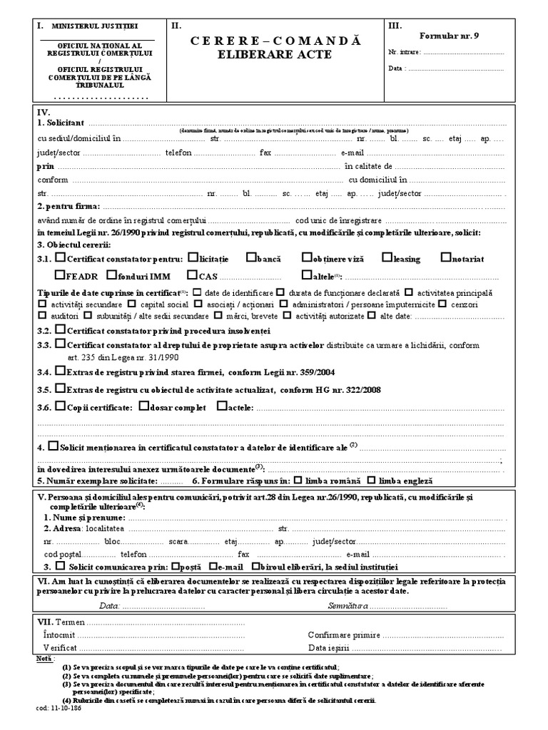 Formulare Cereri De Comanda Informatii Si De Certificat Constatator