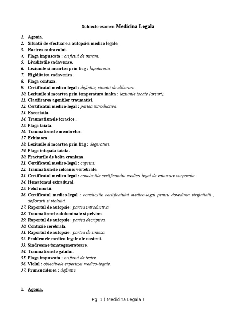 Subiecte Examen Medicina Legala