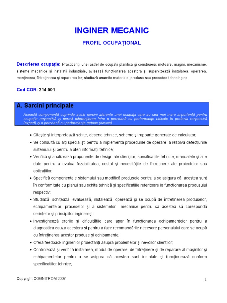 Explicitarea codurilor cor din romania. Lista ocupațiilor din cor în ordinea crescătoare a codurilor 1 1 111101 adjunct al procurorului general 2 111102 ambasador 3 111103 chestor parlament 4 111104. Fisa postului proiectant inginer mecanic 214438 intrebare. Clasificarea ocupatiilor din romania.