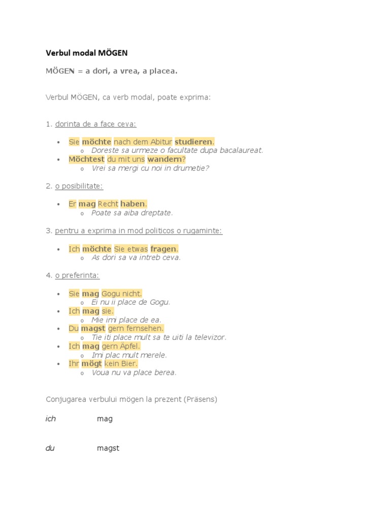 Verbul Modal Mogen Ajutor Integrare Germania