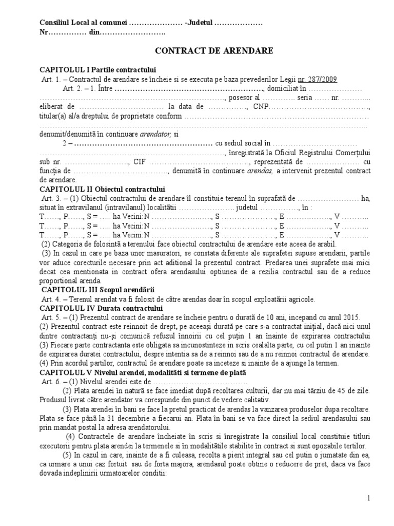 Model Contract Arenda Cadru