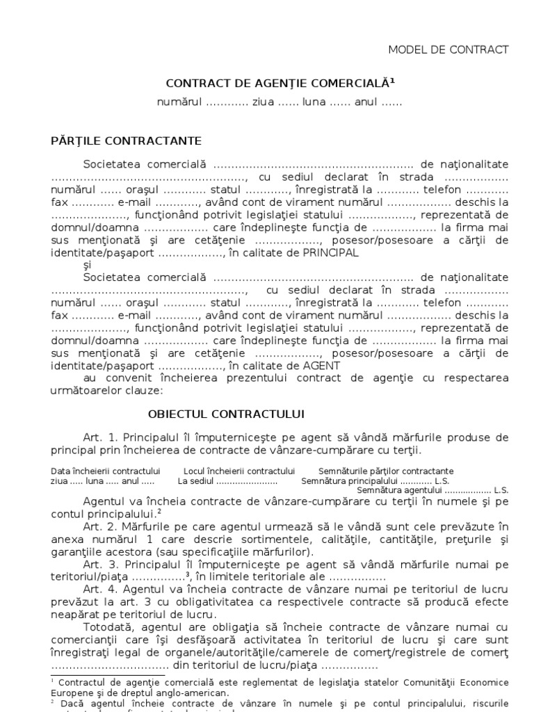 Contract De Agenţie Comercială