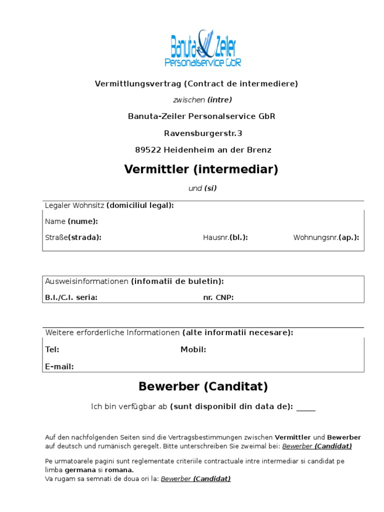 Contract De Intermediere Model