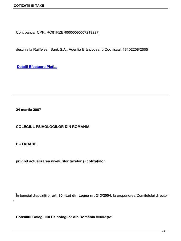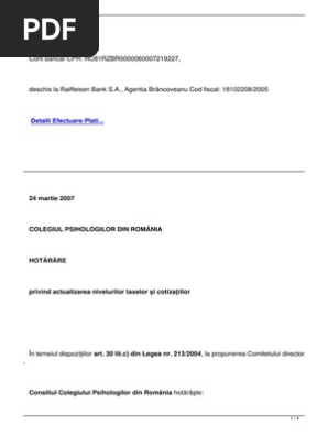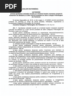Hotararea Colegiului Psihologilor Din Romania Nr 2cc 2013 Aprobarea Cotizatiei Anuale Si A Nivelului Taxelor Necesare Acoperirii Costurilor De Atestare Si A Altor Servicii Prestate De Colegiul Psihologilor Din Romania
