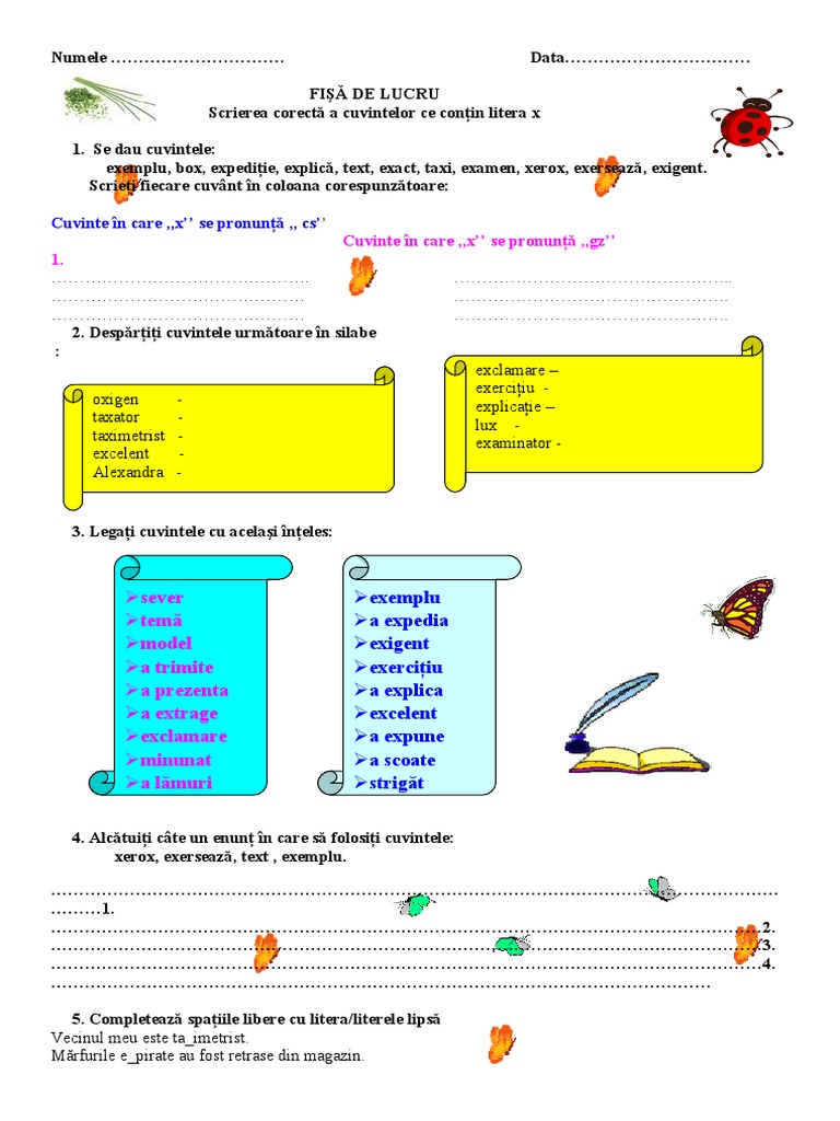 Scrierea Corecta A Cuvintelor Care Contin Litera X Fisa De Lucru