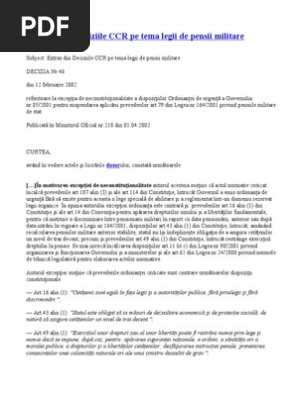 Extras Din Deciziile Curtii Constitutionale A Romaniei Pe Tema Legii Pensiilor Militare