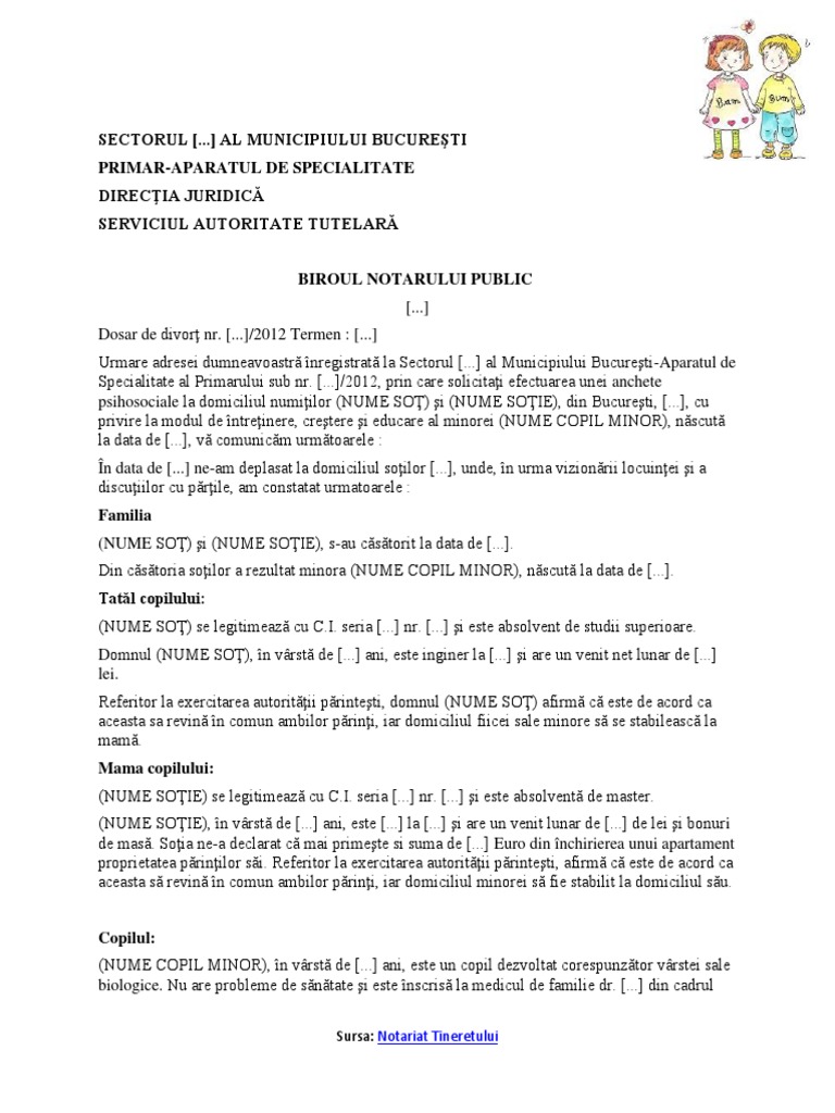 Ancheta Psihosociala Divort Cu Minori La Notar Model 1