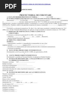 Proces Verbal 2 De Cercetare Accident De Munca