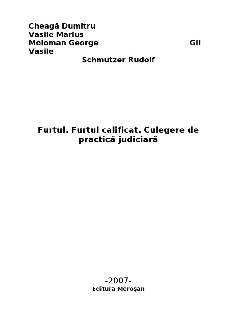 Furtul Furtul Calificat Culegere De Practic A Judiciar A