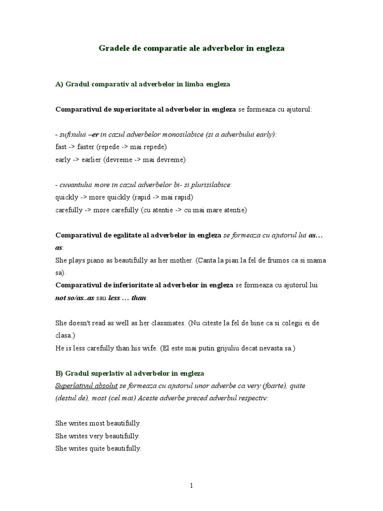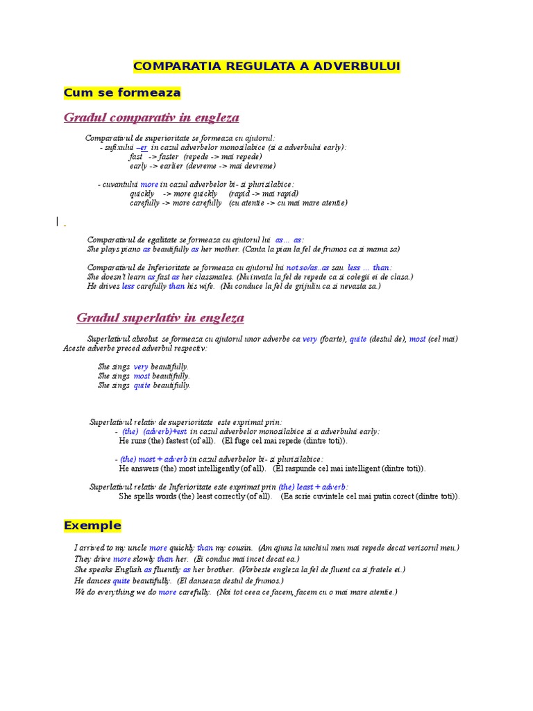 Gradele De Comparatie Ale Adverbelor In Engleza