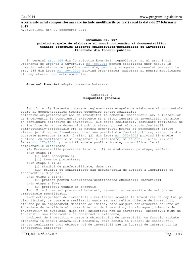 Hg 907 2016 29 12 2016 Continut Cadru Doc Teh Ec Pr Finantate Din Fonduri Publice