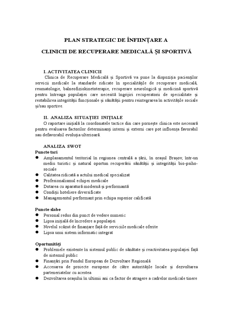 Plan Strategic De Inființare A Unui Cabinet Medica