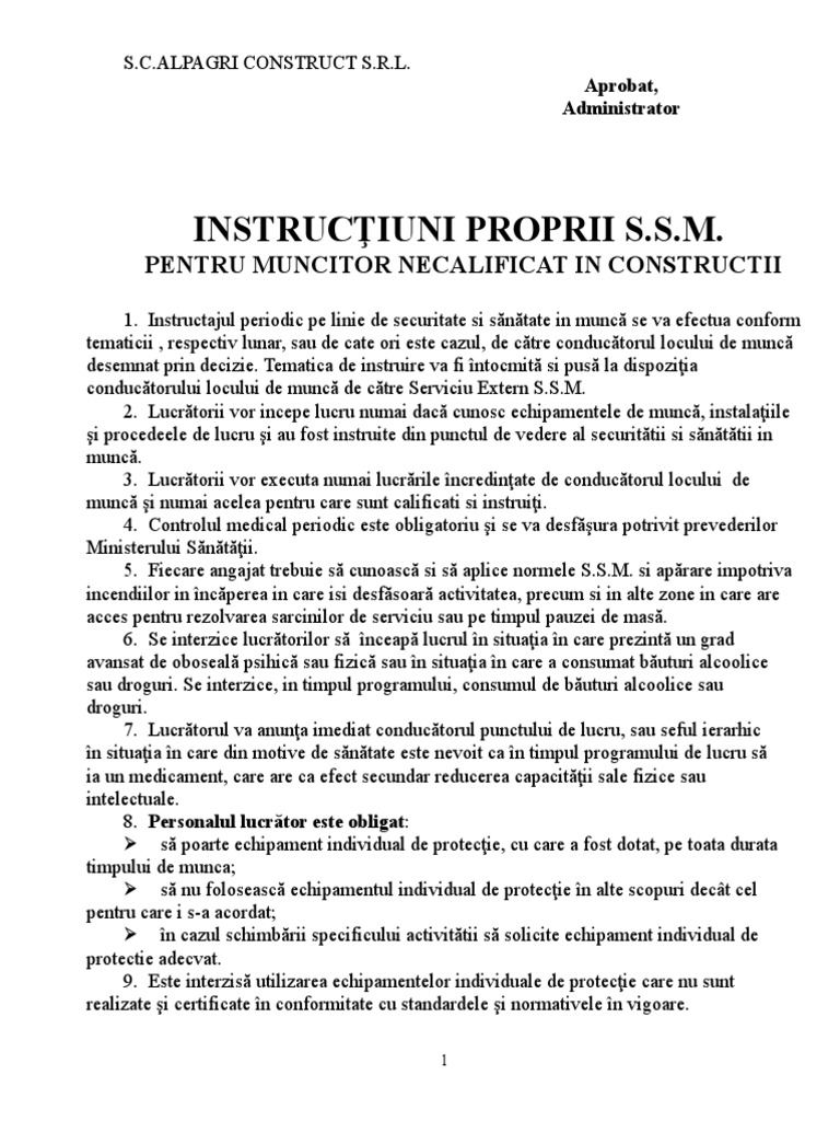 Instructiuni Proprii Muncitor Necalificat In Constructii Protectia Muncii