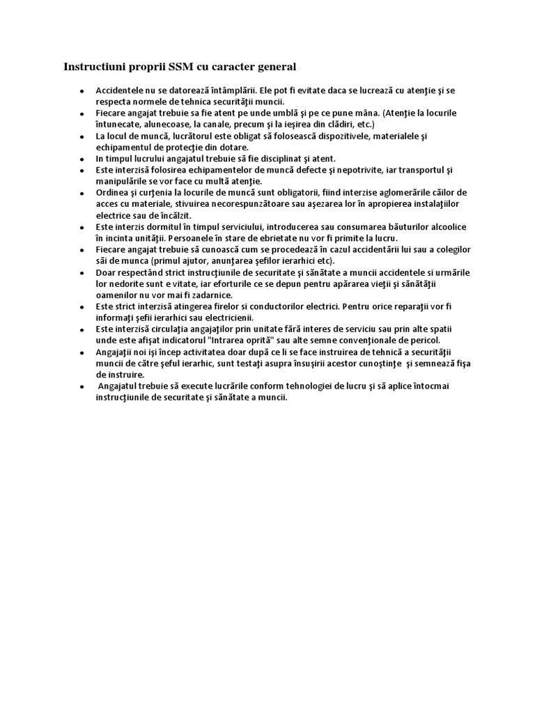 Instrucţiuni Proprii De Securitate A Muncii Pentru Muncitor Necalificat Psi Su Ssm