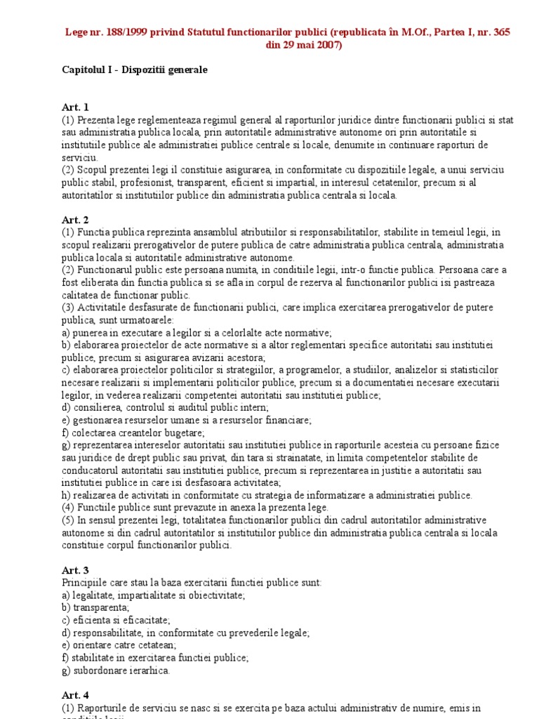 Legea Nr 188 Din 1999 Privind Statutul Functionarilor Publici Republicata