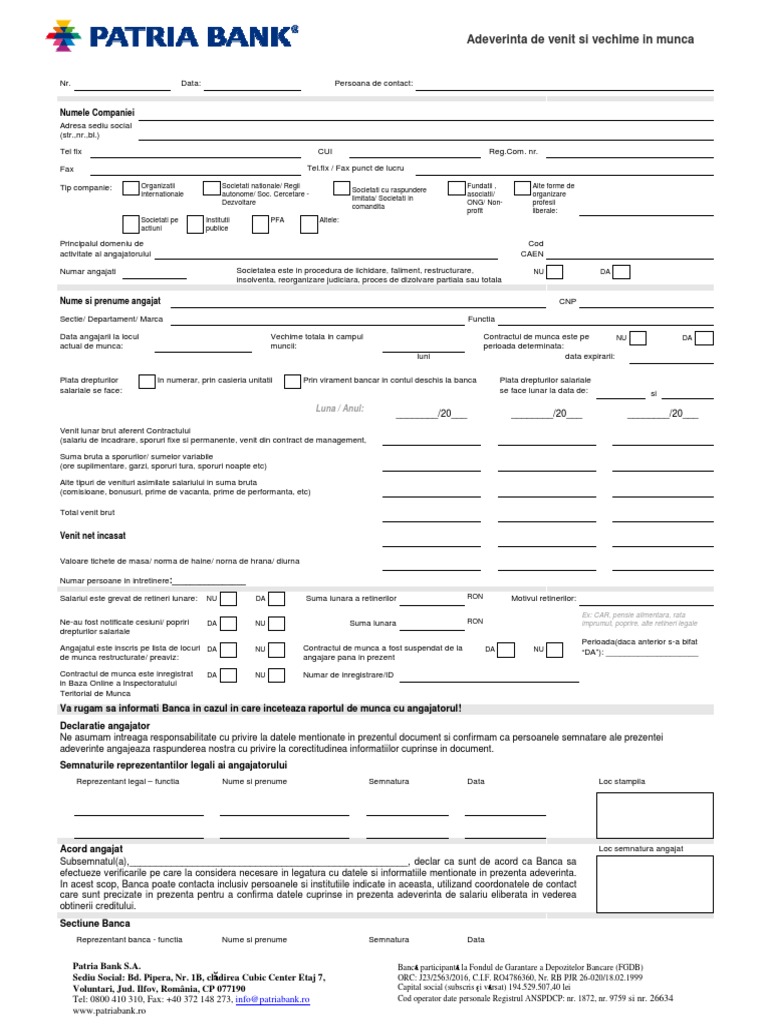 Adeverinta De Venit Si Vechime In Munca Patria Bank