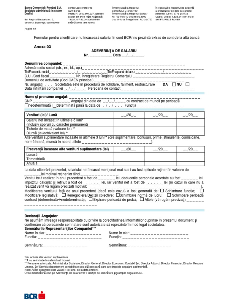 Adeverinta De Venit Bcr Anexa