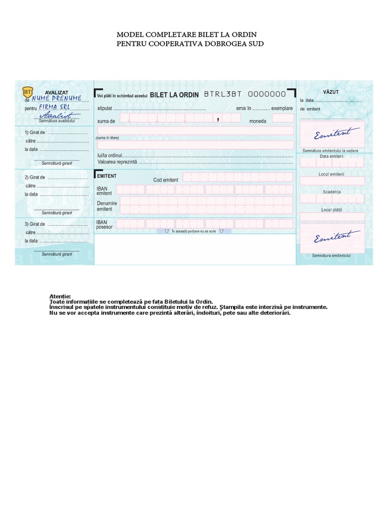 Cum Se Completează Un Bilet La Ordin