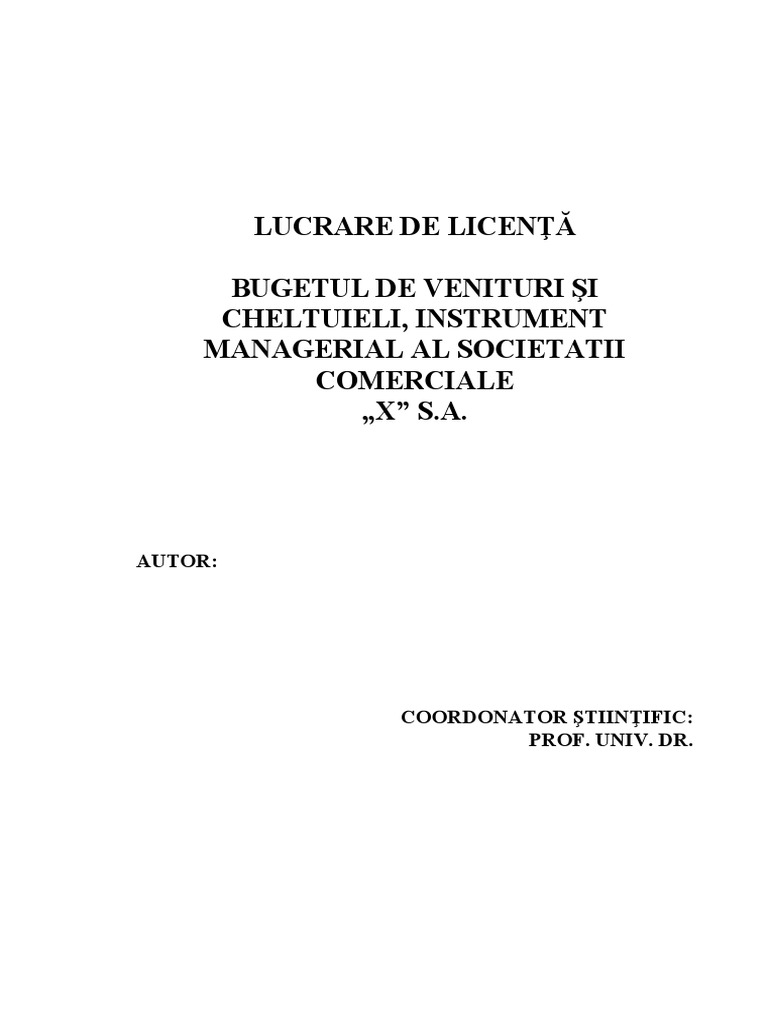 Bugetul De Venituri Si Cheltuieli Instrument Managerial Al Societatii Comerciale
