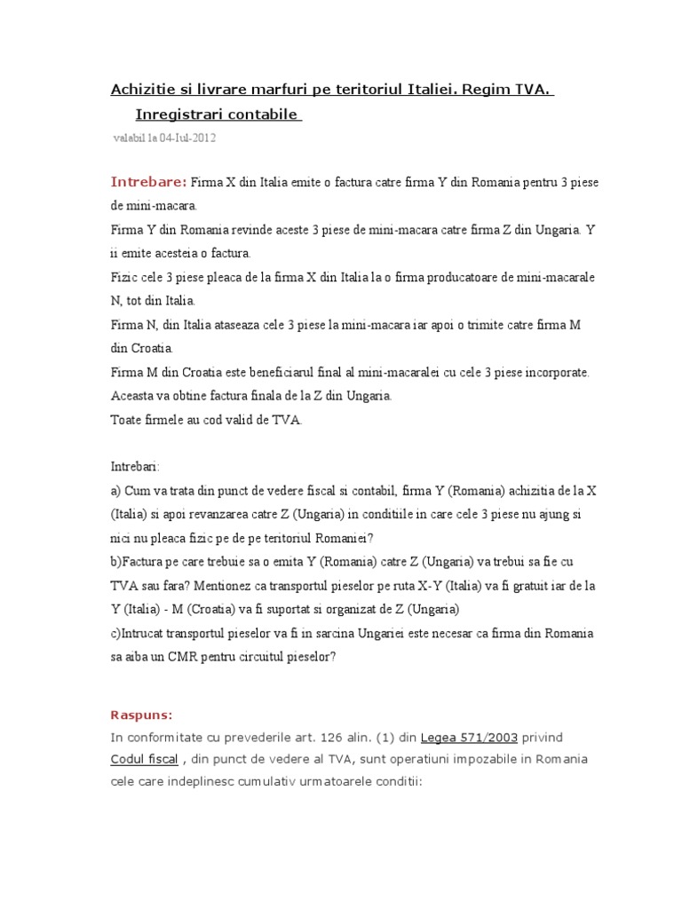Monografie Contabila Ajustare Tva Stoc Marfa