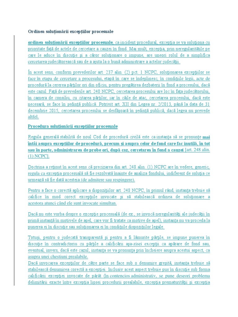 Ordinea Solutionare Excepti Procesuale