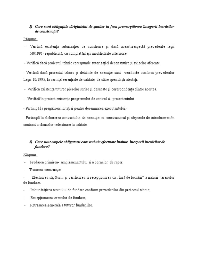Care Sunt Obligaţiile Dirigintelui De Santier In Fazapremergătoare Inceperii Lucrărilor De Construcţii