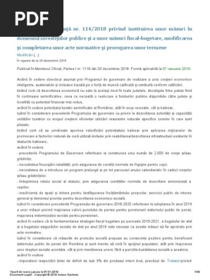 Ordonanta De Urgenta Nr 114 2018 Privind Instituirea Unor Masuri In Domeniul Investitiilor Publice Si A Unor Masuri Fiscal Bugetare Modificarea Si Completarea Unor Acte Normative Si Prorogarea Unor Te