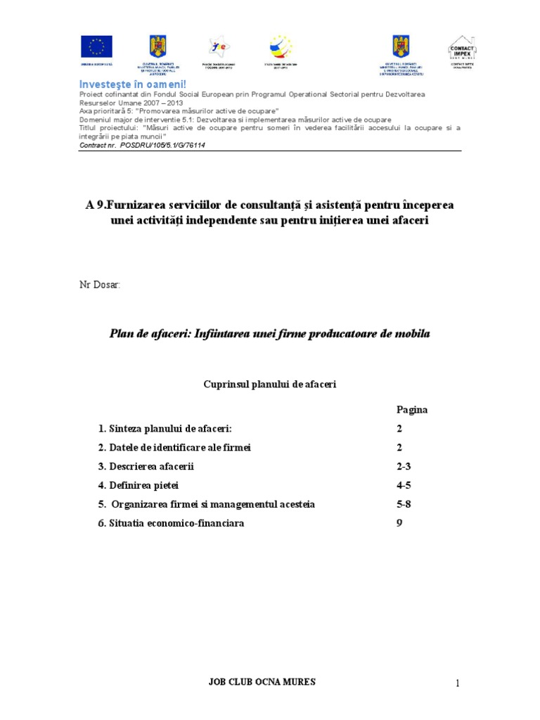 Referat Plan De Afaceri Fabrica De Mobila 414220 Graduo