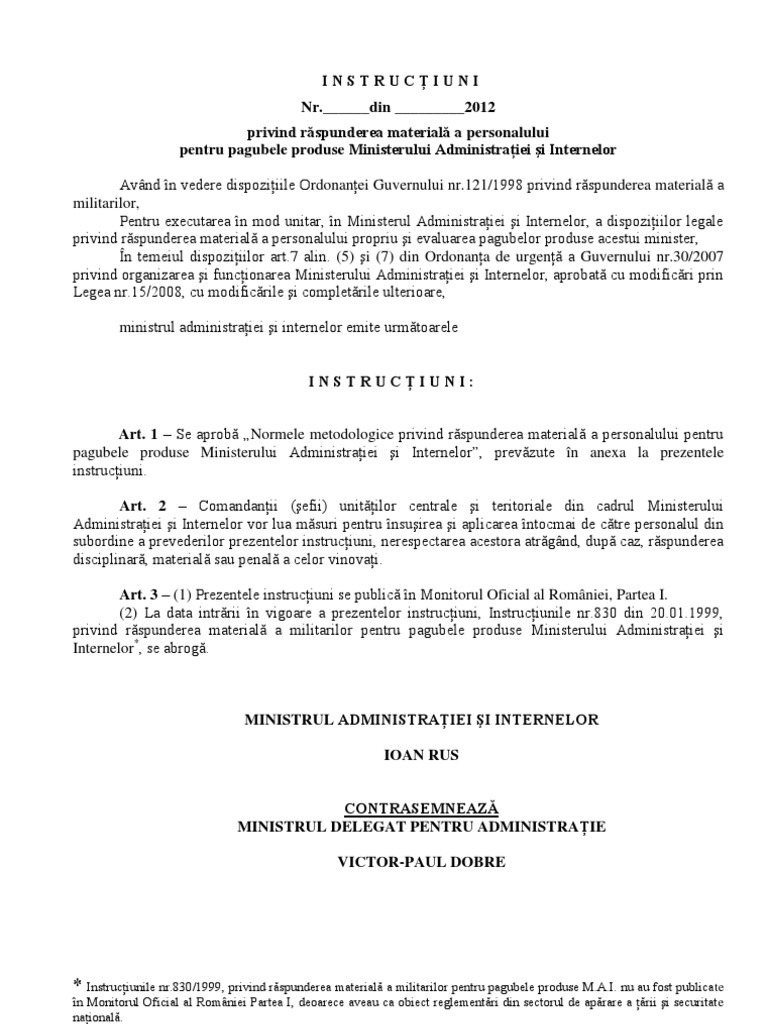 Http Www Sindunipol Ro Wp Content Uploads 2012 05 Instructiuni Nr 114 Din 2013 Instructiunile Nr 114 Din 2013 Privind Raspunderea Materiala A Personalului Pentru Pagubele Produse Ministerului Afacerilor Interne Pdf