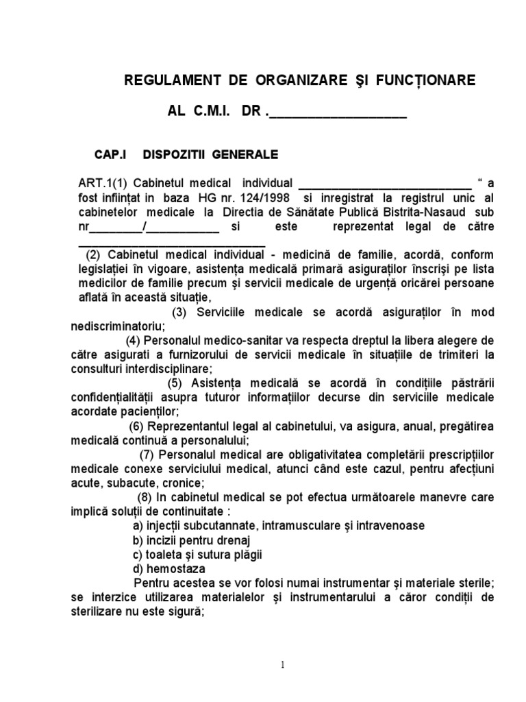 Regulament Functionare Cabinet Stomatologic