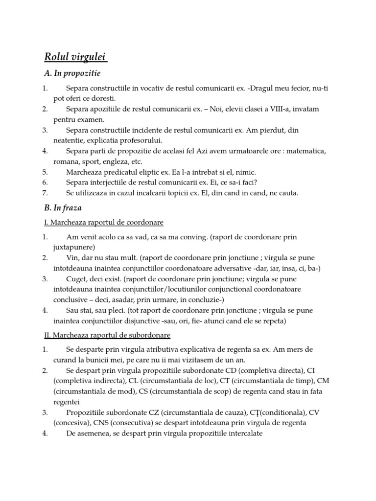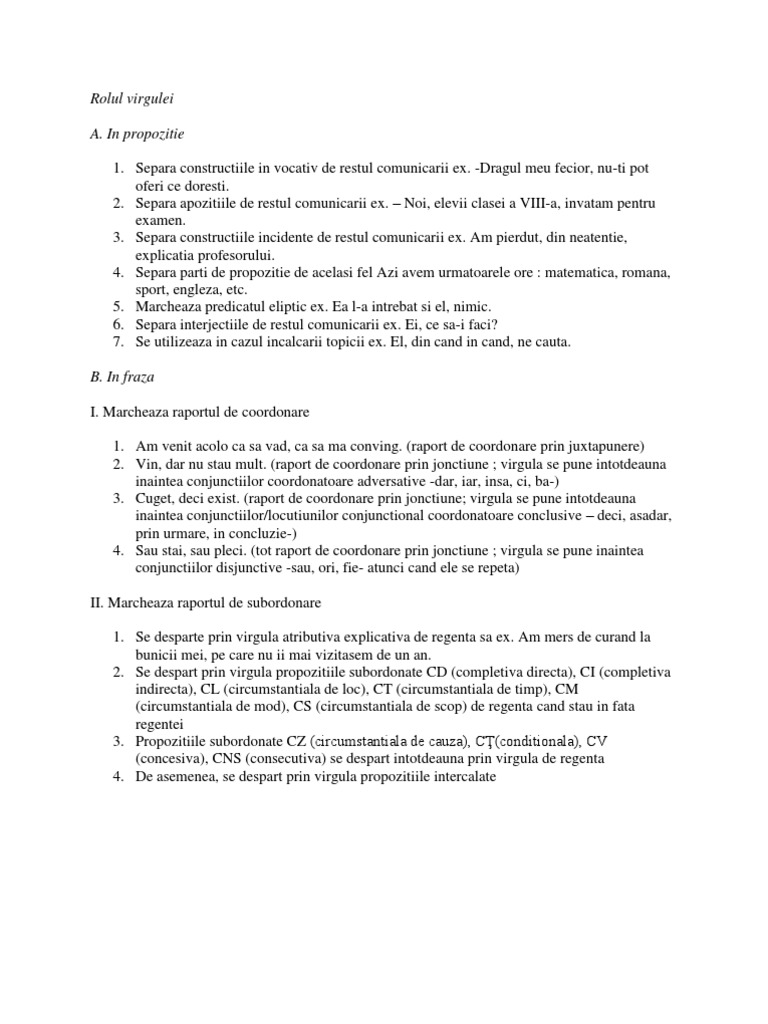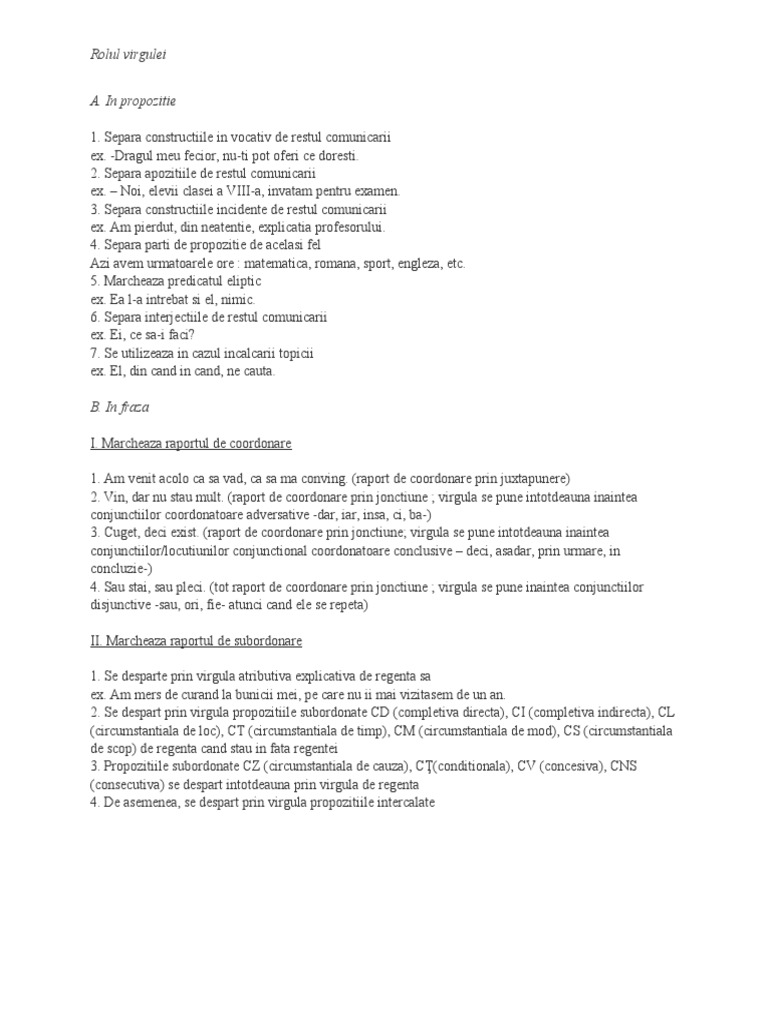 Rolul Virgulei In Propozitie
