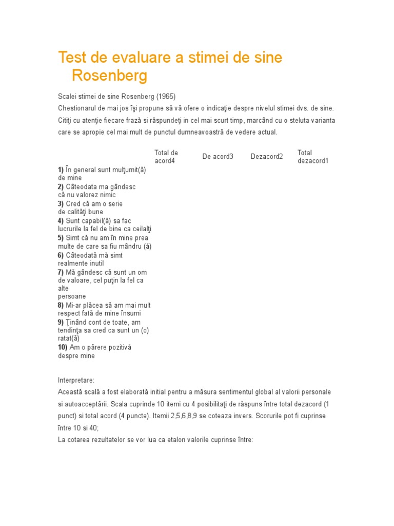 Test De Evaluare A Stimei De Sine Rosenberg Doc