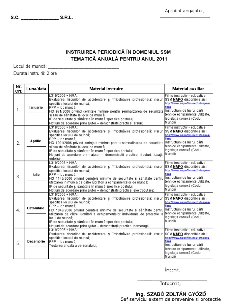 Instruirea La Locul De Munca Safelandia Ro