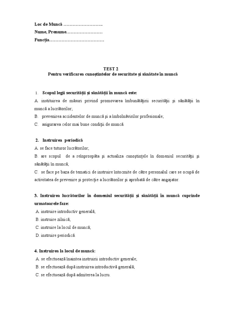 Teste Ssm Protectia Muncii Cu Raspunsuri